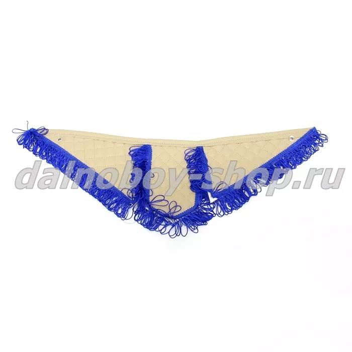 5205/Вымпел из 3-х частей Иск кожа стеганный JAC бежевый + синяя бахромаВымпел из 3-х частей Иск кожа стеганный JAC бежевый + синяя бахрома