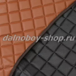 - Экокожа. Специальная автомобильная экокожа — это не просто кожзам, а сложный по составу материал, обладающий особыми свойствами. Такие коврики выпускаются с учетом их назначения. Они износостойкие, не восприимчивы к влаге, устойчивы к перепадам температур. При этом экокожа проницаема для воздуха, поэтому не создает парникового эффекта.