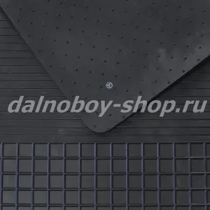 - Резина (полиуретан). Наиболее популярный вариант. Такие коврики стоят недорого и могут использоваться в любой сезон. Материал не впитывает жидкость, прост в уходе, препятствует скольжению, не привлекает внимания, поскольку сливается с полом салона. Эластичность и стойкость современных составов к агрессивным веществам делает изделия из полиуретана еще более востребованными.