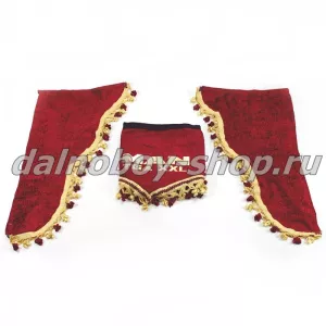 Шторы размещаются на лобовой и боковых сторонах кабины, изготавливаются из велюра и других долговечных натуральных материалов. В ассортименте нашего магазина представлены десятки видов ламбрекенов с кистями по периметру, разной расцветки и текстуры.