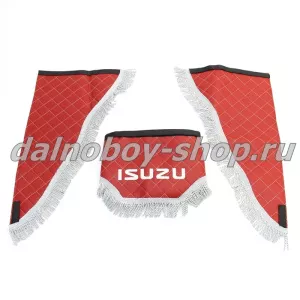 кожзам 1,8м ISUZUЛамбрекен лоб.+ шторка боковая кожзам 1,8м ISUZU красныйЛамбрекен лоб.+ шторка боковая кожзам 1,8м ISUZU красный