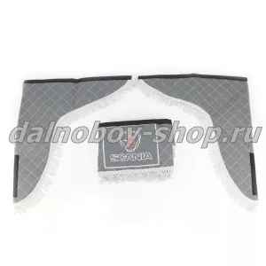 кожзам 2.2м SCANIAЛамбрекен лоб.+ шторка боковая кожзам 2.2м SCANIA серыйЛамбрекен лоб.+ шторка боковая кожзам 2.2м SCANIA серый