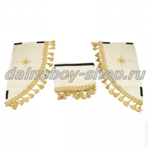 Шторы размещаются на лобовой и боковых сторонах кабины, изготавливаются из велюра и других долговечных натуральных материалов. В ассортименте нашего магазина представлены десятки видов ламбрекенов с кистями по периметру, разной расцветки и текстуры.