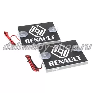 Табличка светящаяся черная 13/15 см. RENAULT бел/бел 24v (2шт) двойная